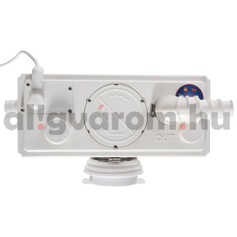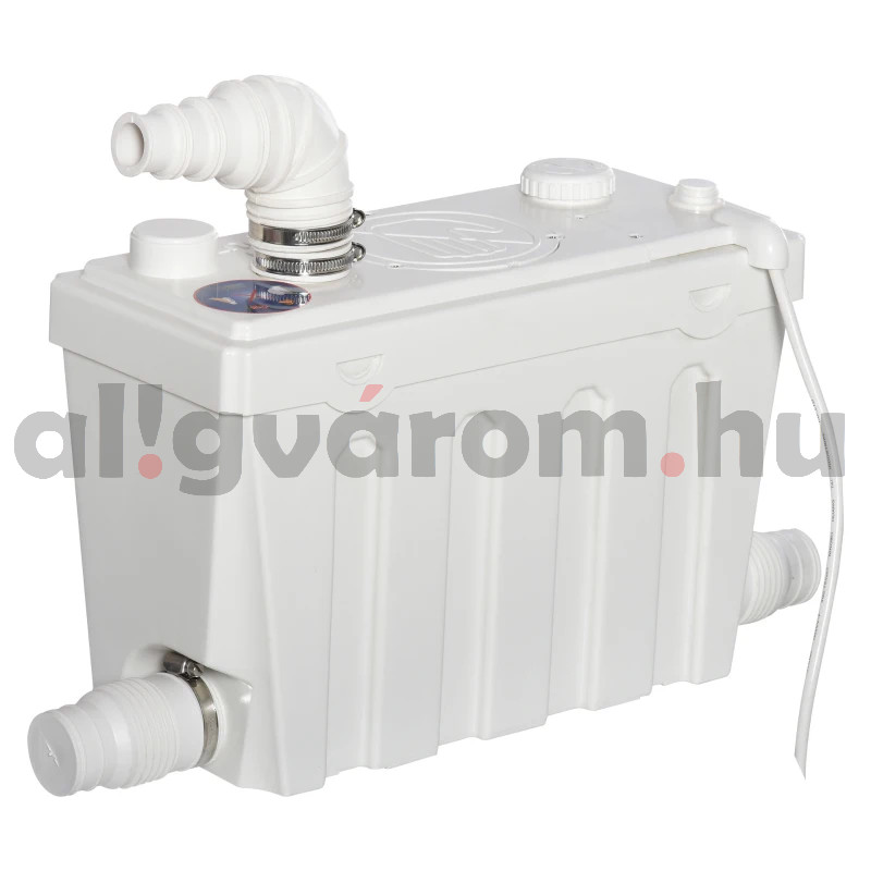 A fürdőszoba, konyha vagy WC szennyvízének átemelésére szolgáló szivattyú. A 110 mm WC bekötés a nagyobbik oldalon, a három kisebb, 40 mm-es a keskenyebbik oldalán van. A nyomóág a tetején szintén 32 mm-es. Ha olyat keses, amelyik szűk helyre is befér,