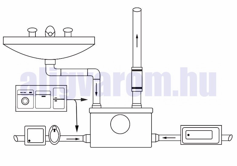 Akár több berendezés is csatlakoztatható rá, pl. WC, zuhanyzó, mosogató, mosdó vagy akár mosógép, a WC csatlakozás kivételével,