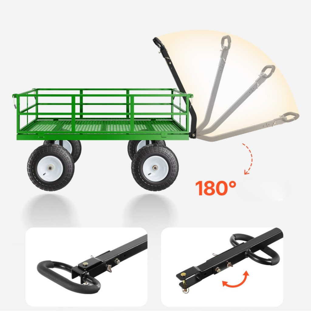 Extra nagy teherbírású 3 az 1-ben acél kerti kézikocsi 544 kg kapacitás, lehajtható oldalfalak, 360°-ban forgó első kerekekkel, 110x75 cm platóméret