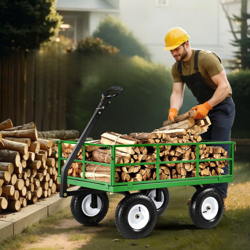 Ez az ipari minőségű kerti kézikocsi a legnehezebb szállítási feladatokat is megkönnyíti – akár 544 kg teherbírásávalkomoly terheket mozgat anélkül, hogy több fordulóra lenne szükség. A 3 az 1-ben kialakítás lehetővé teszi, hogy a kocsi oldalfallal, platóként vagy utánfutóként is használható legyen, így minden feladathoz igazítható – legyen szó föld, kő, faanyag vagy nehéz eszközök mozgatásáról.