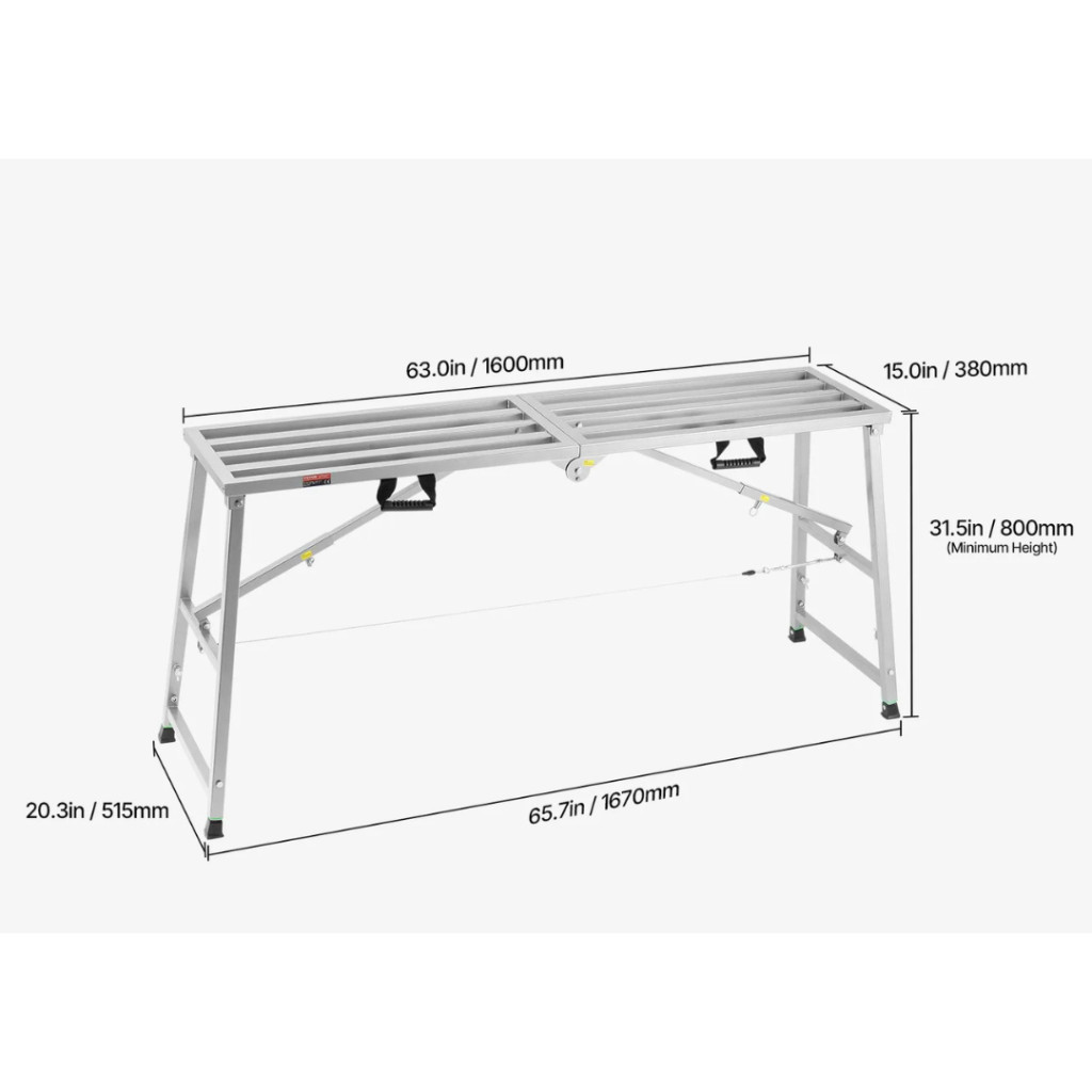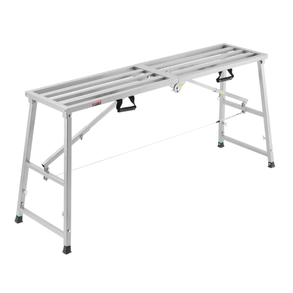 A munkaplatform Q235 jelű acélból készült, 1,2 mm csőfalvastagsággal, amely garantálja a tartósságot és hosszú élettartamot. A horganyzott felület védi a rozsdásodás ellen, a csúszásmentes lábak pedig minden felületen stabil állást biztosítanak.