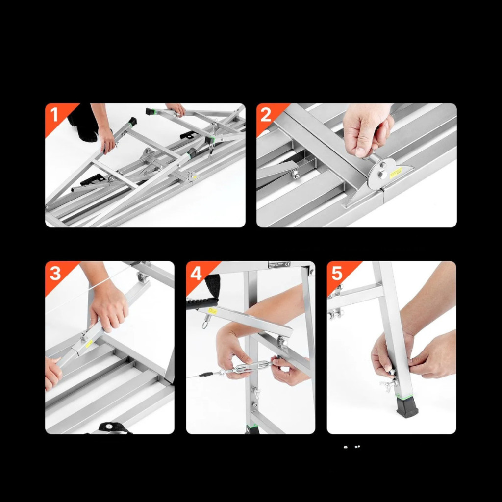 A platform használata nem igényel bonyolult szerelést. Néhány egyszerű mozdulattal kinyitható és összecsukható, így ideális azok számára, akik gyakran mozgatják vagy korlátozott tárolóhellyel rendelkeznek.
