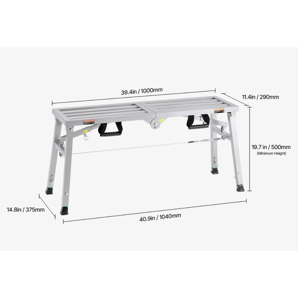 Összecsukott állapotban a munkaplatform mérete mindössze 525 × 380 × 135 mm, így kis helyen is elfér. Súlya csupán 10,8 kg, ami rendkívül könnyű szállítást és mozgatást tesz lehetővé. Kialakítása révén bárhol könnyedén tárolható.