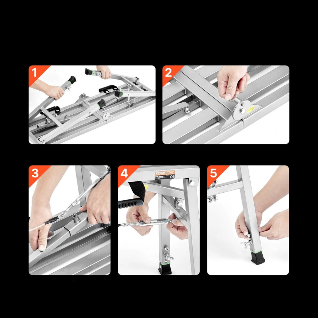Nincs szükség bonyolult összeszerelésre: a platform néhány mozdulattal kinyitható és összecsukható, így ideális választás azoknak, akik gyakran használják és rendszeresen mozgatják.