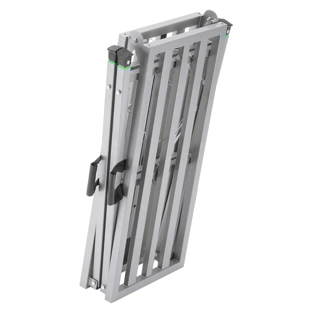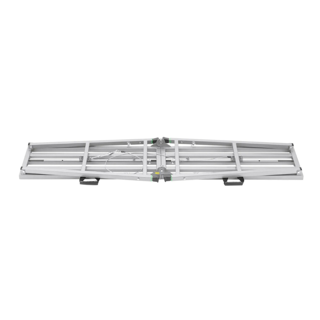 A platform összecsukott állapotban mindössze 925 × 537 × 135 mm, így kis helyen is elfér, könnyen szállítható és tárolható. Súlya mindössze 19,5 kg, így egyszerűen mozgatható, mégis rendkívül erős és tartós.