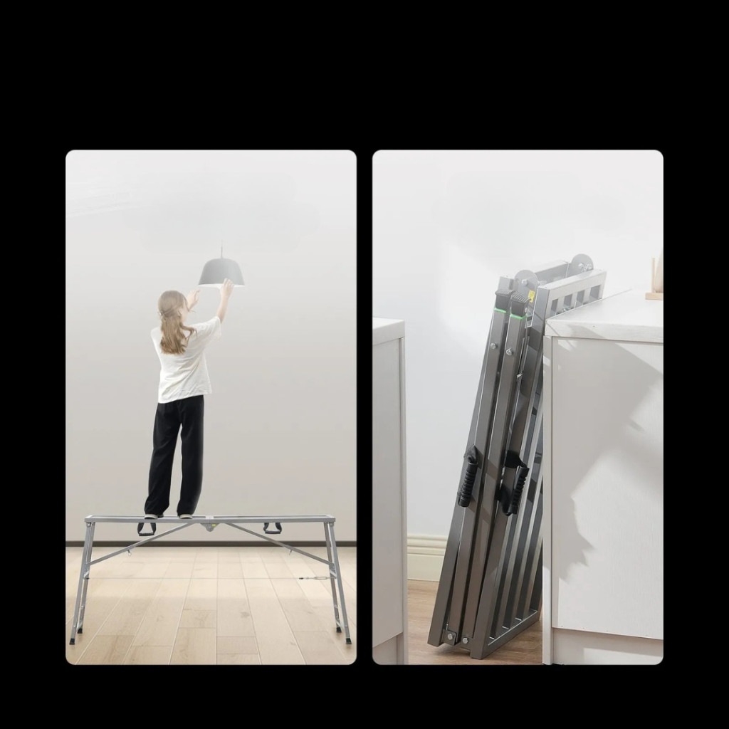 Nincs szükség bonyolult szerelésre: a platform néhány mozdulattal felállítható vagy összecsukható, így használat után egyszerűen elrakható.