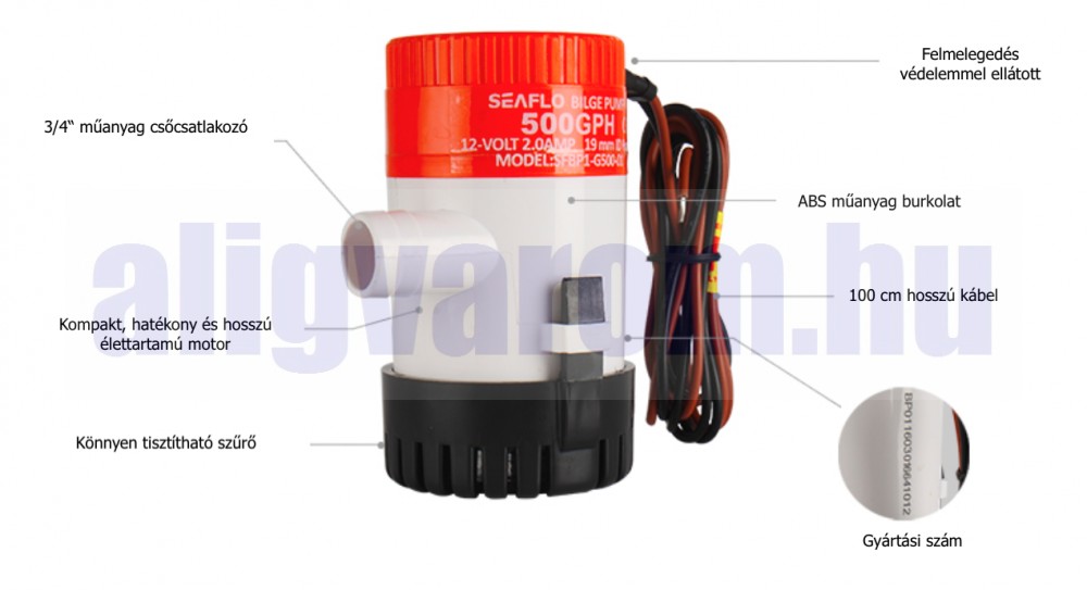 Fenékszivattyú Seaflo búvárszivattyú 12V 48W 1890 liter/óra szállítás