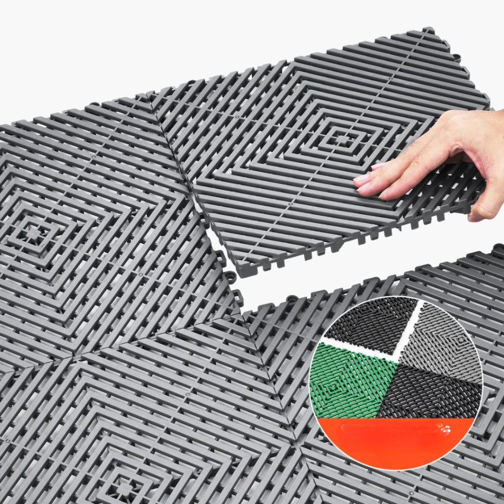 A lapok különböző színekkel is kombinálhatók, így egyedi, DIY stílusú mintázatokat alakíthat ki garázsában vagy műhelyében. Az esztétikus, modern burkolat nemcsak praktikus, hanem látványos is.