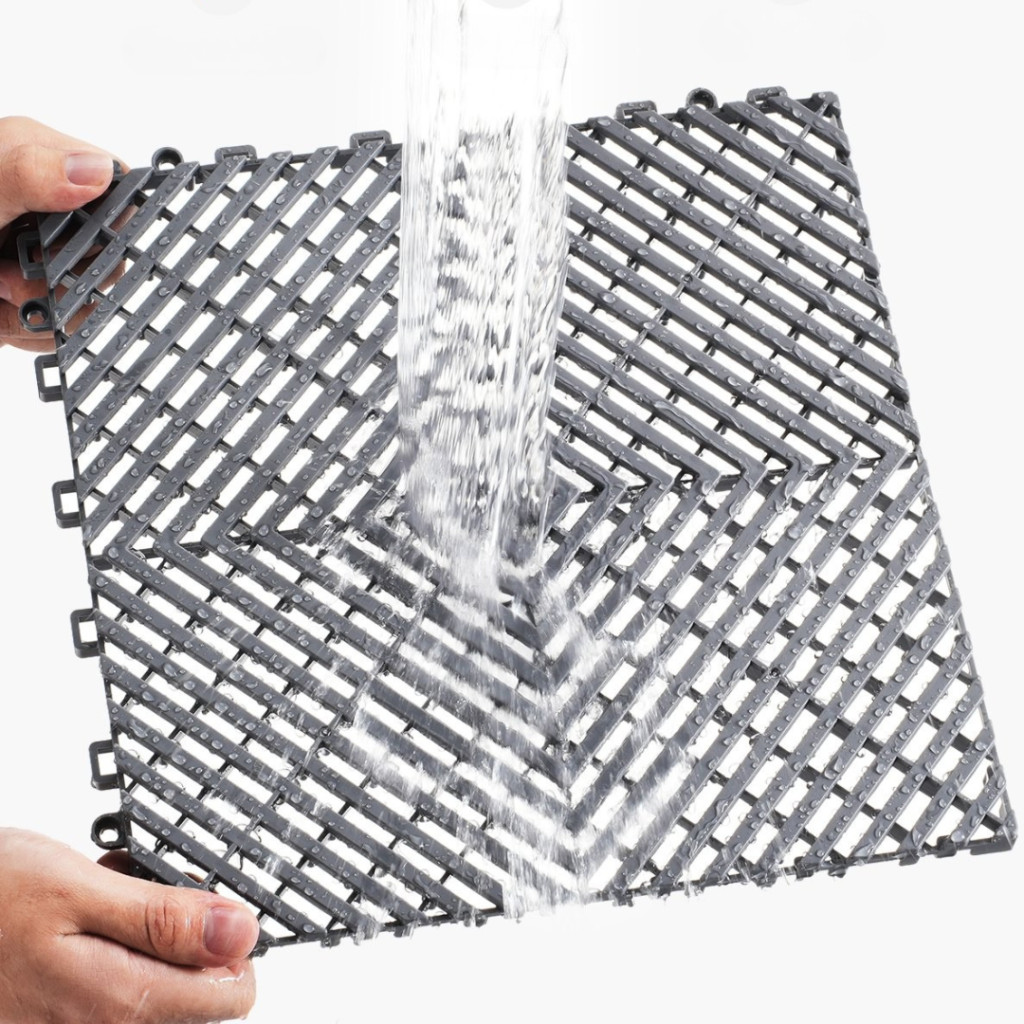 A perforált, lyukacsos szerkezet lehetővé teszi a víz gyors elvezetését a felületről, megelőzve a tócsaképződést és a csúszásveszélyt. Ideális választás garázsbejárókhoz, autómosókhoz, teraszokhoz és egyéb nedves környezetekhez.