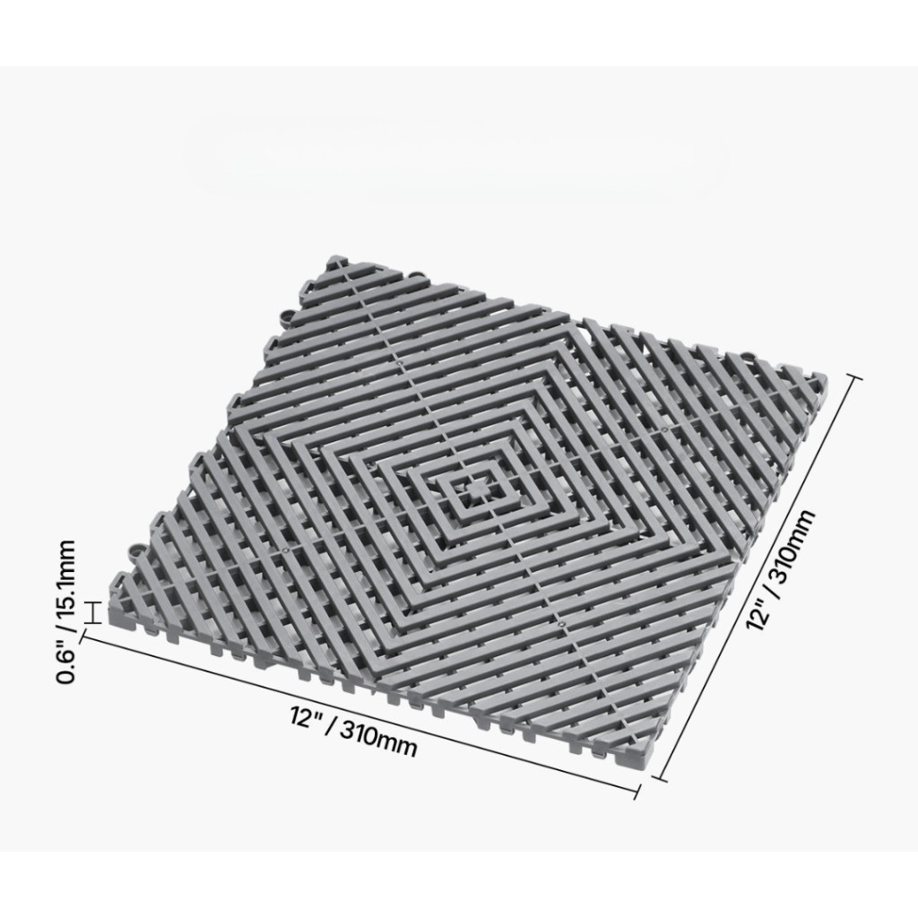 Vízelvezető padlólap 12 db szürke garázspadló 31x31 cm moduláris PP padlóburkolat összepattintható kivitel