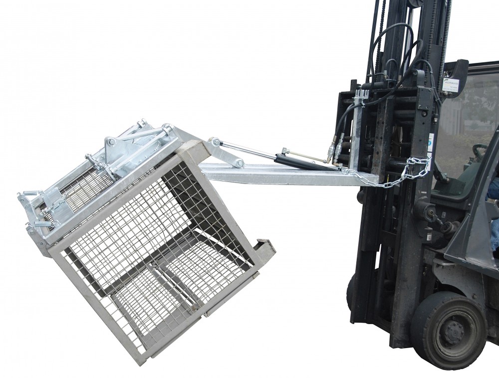 Gitterbox ürítő targonca adapter -  GiBo kiöntő - hidraulikus ürítés - DIN 15155 rácsos tárolókonténer számára