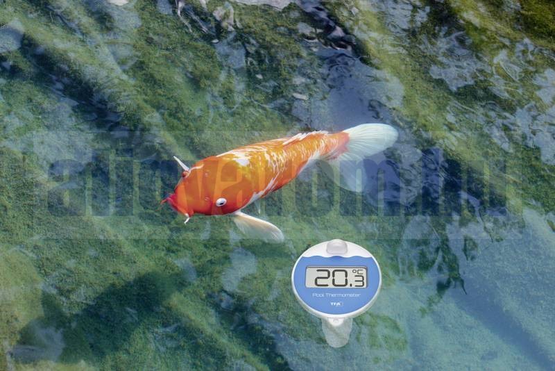 A rádiójel-vezérlésű hőmérővel akármikor ellenőrizheti kerti tavának