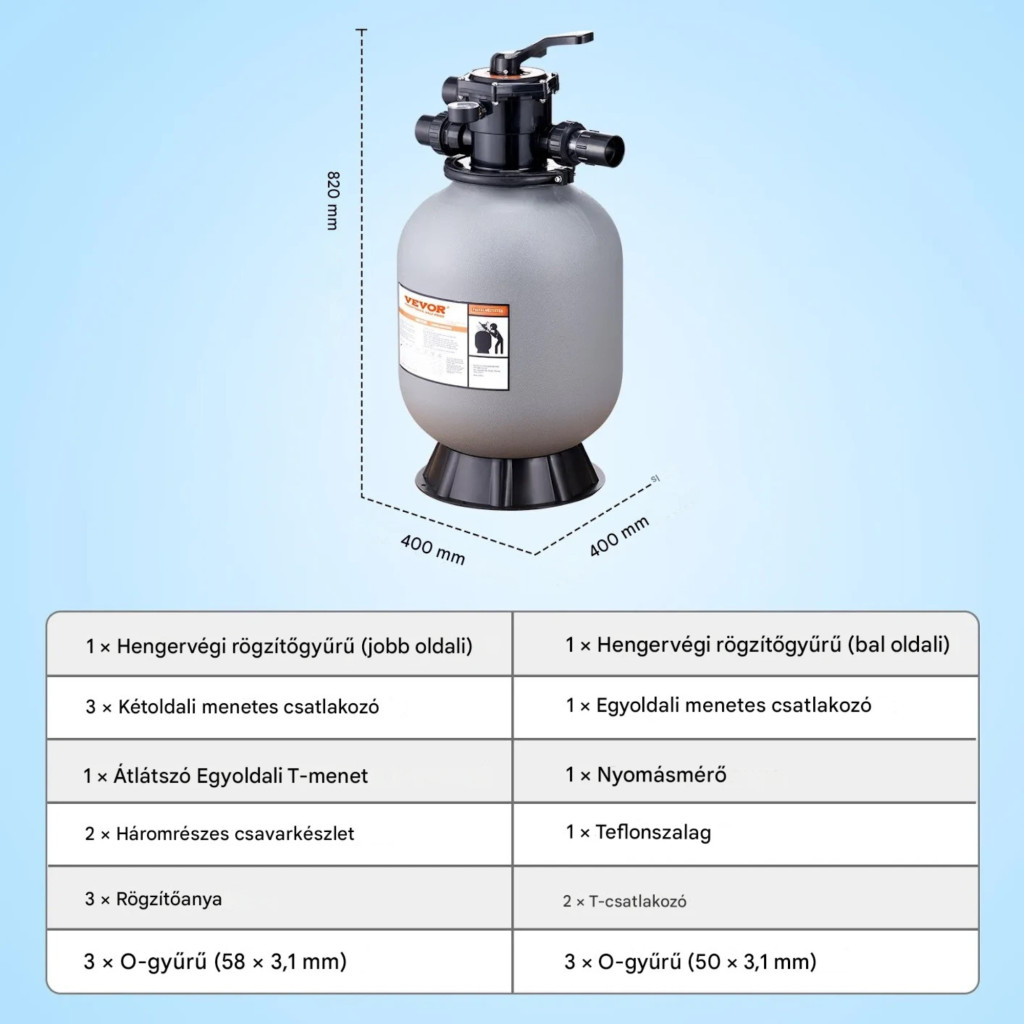 Szűrőtartály átmérő: 406,4 mm