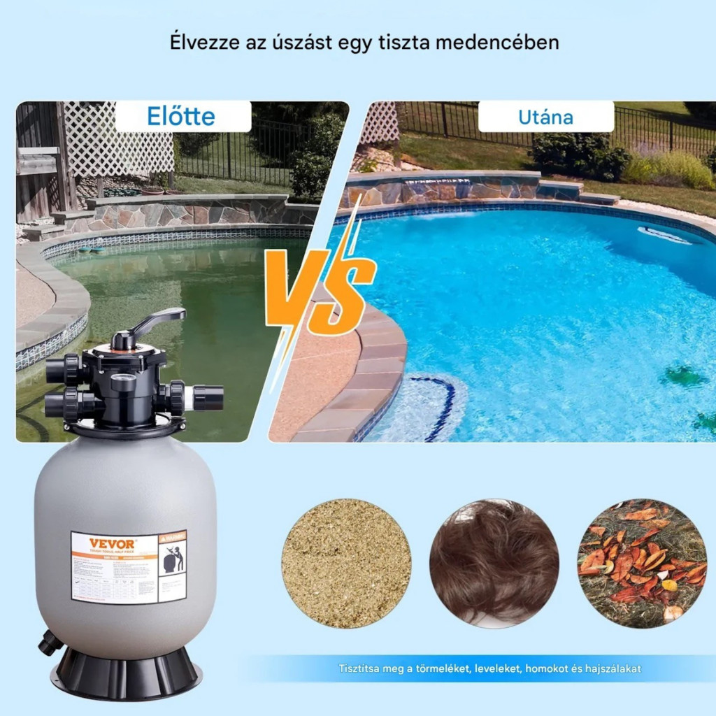 A medence homokszűrő fejlett szűrési technológiával működik: