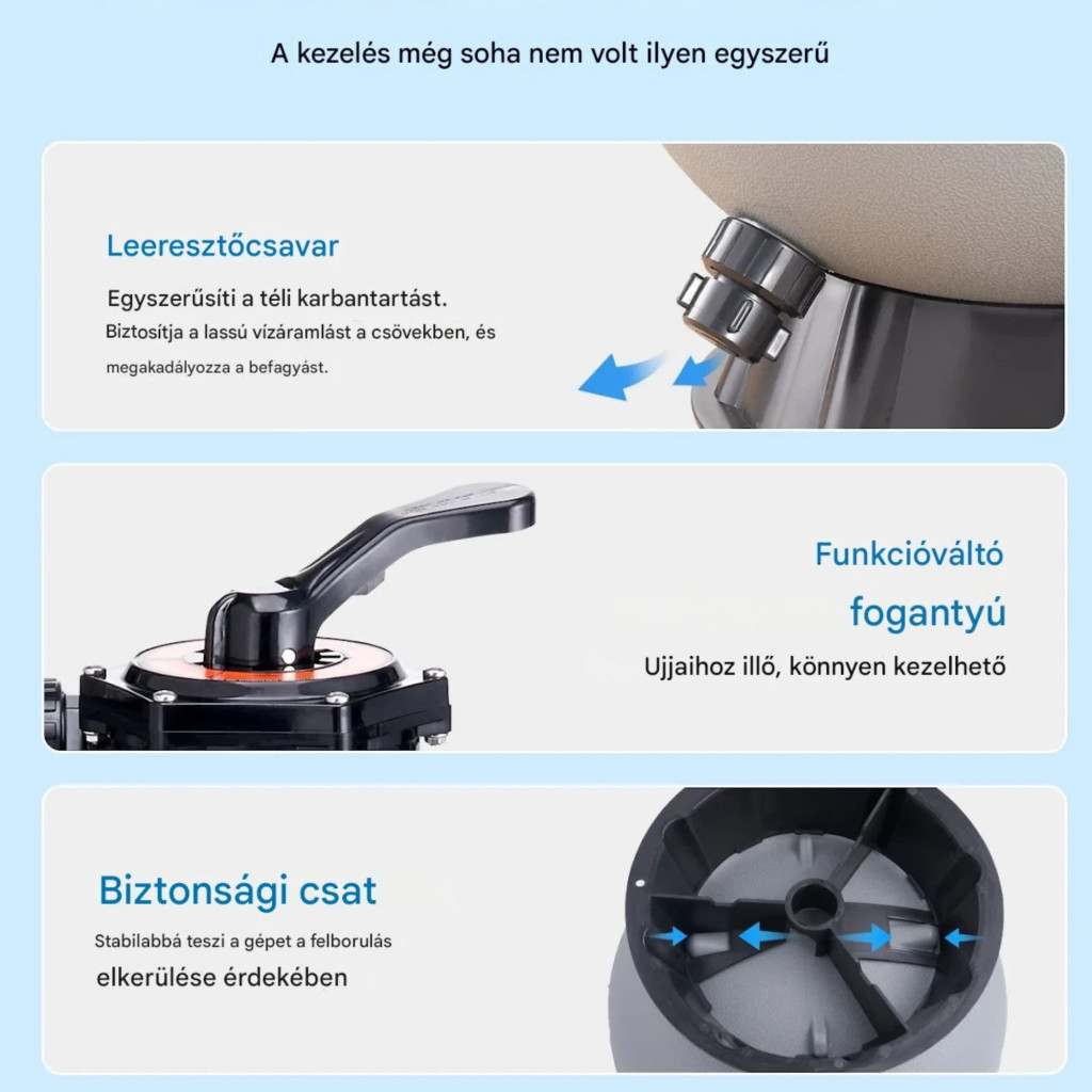 A homokszűrő rendszer medencéhez könnyen telepíthető: