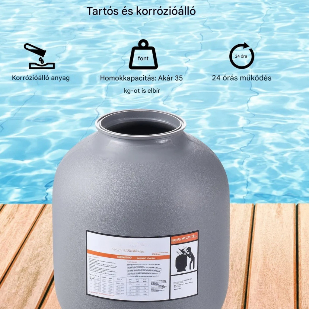 A homokszűrő berendezés medencéhez ideális megoldás, ha Ön kompakt, mégis hatékony rendszert keres. Egyszerű kezelhetősége, tartós kialakítása és kiváló szűrési teljesítménye biztosítja, hogy medencéje vize mindig tiszta és higiénikus maradjon.