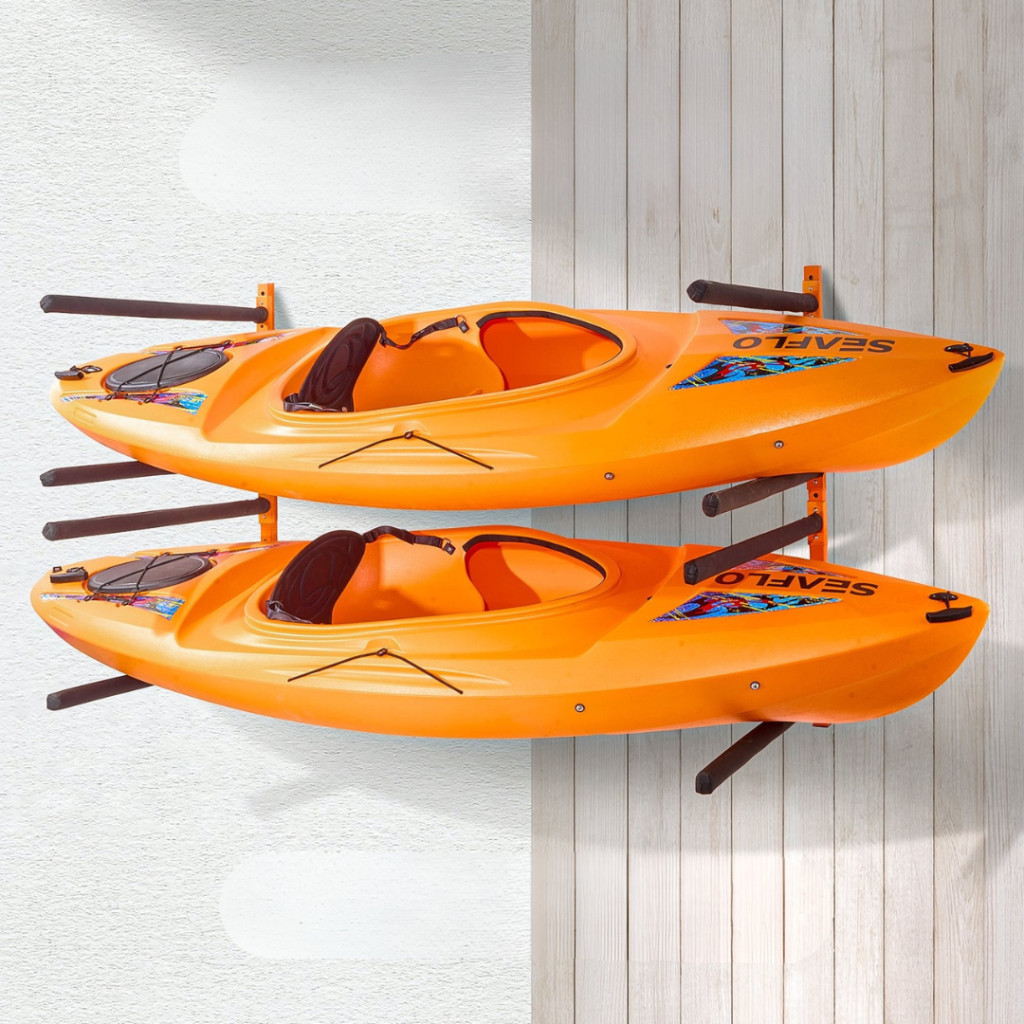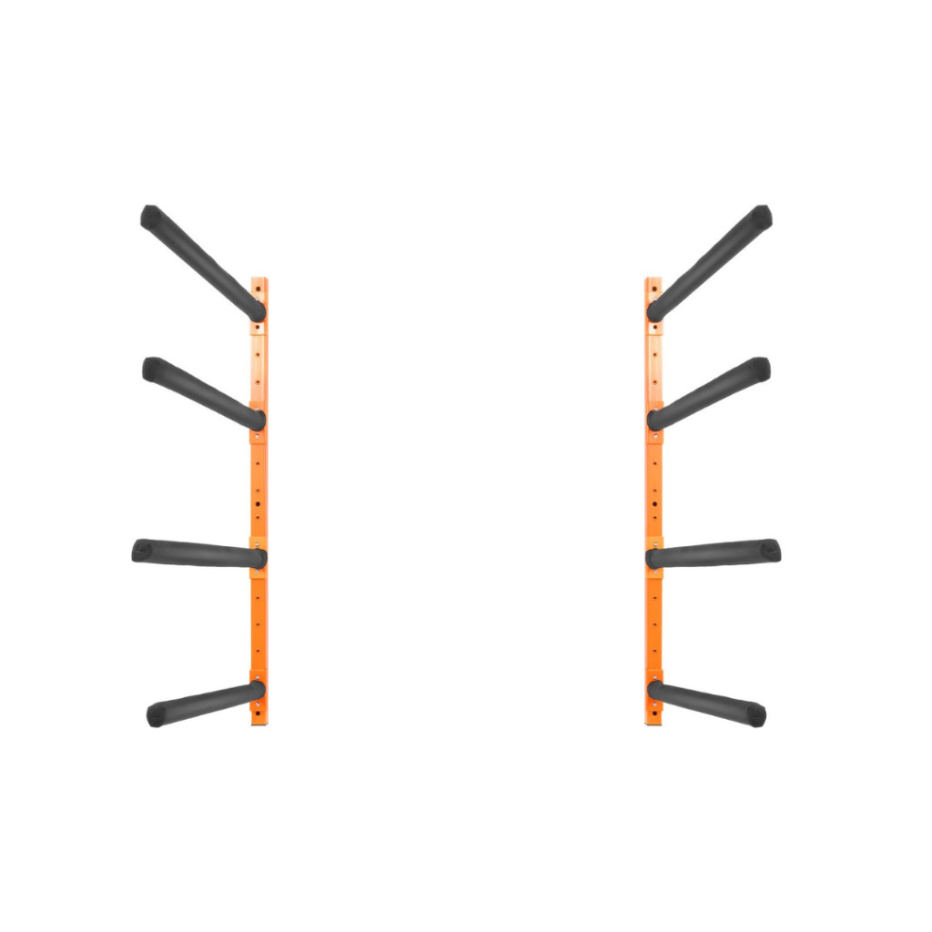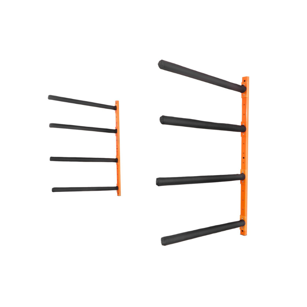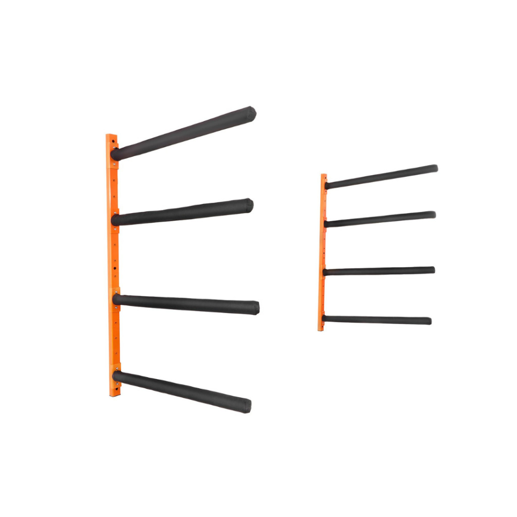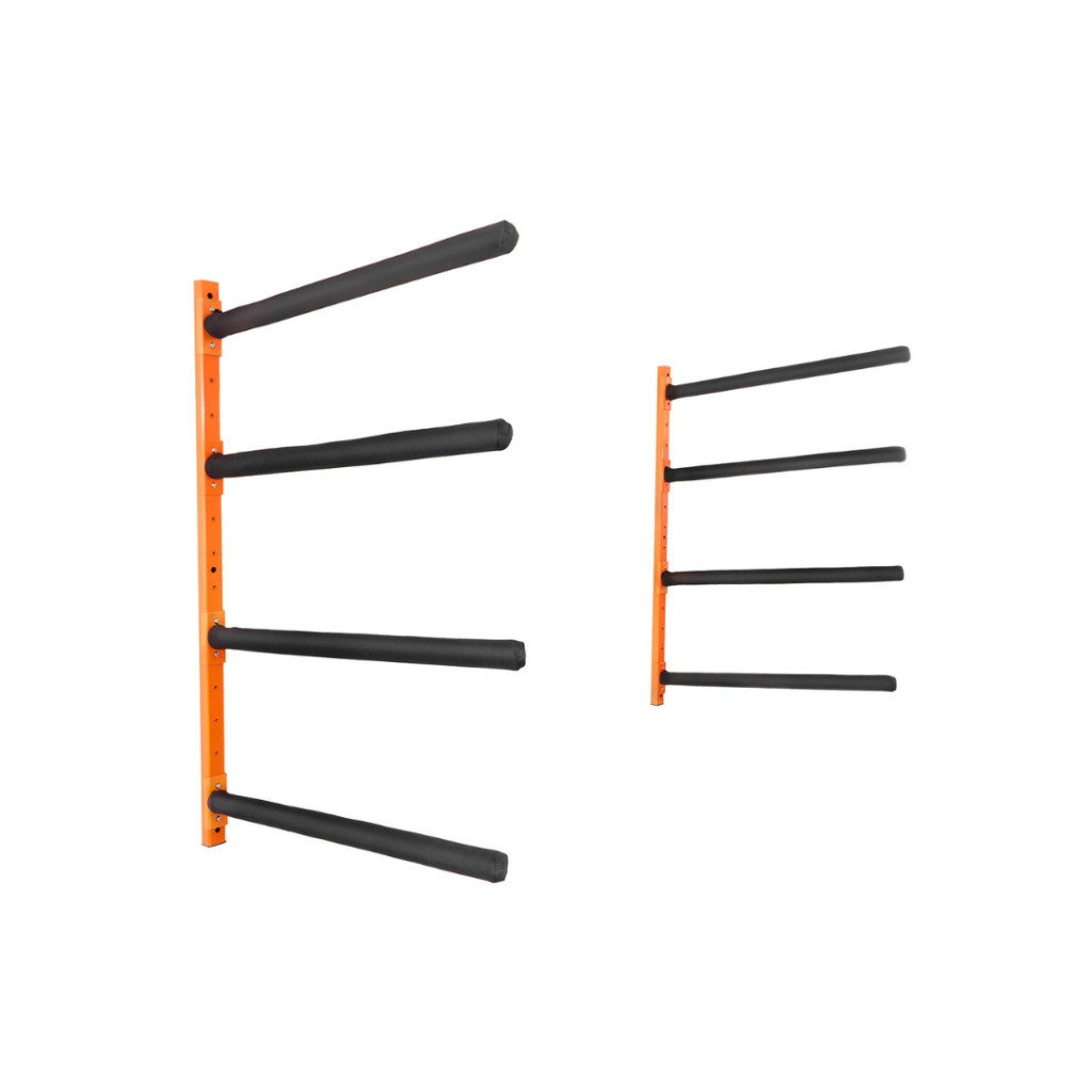 Teremtsen biztonságos és helytakarékos tárolási megoldást kajakjai számára a fali kajaktartó rendszerrel! Ez a masszív acélszerkezet akár 4 darab kajak vagy más vízi sporteszköz egyidejű tárolására is alkalmas, miközben szabadon hagyja a padlófelületet, így értékes helyet takarít meg garázsában vagy kültéri tárolóhelyén.