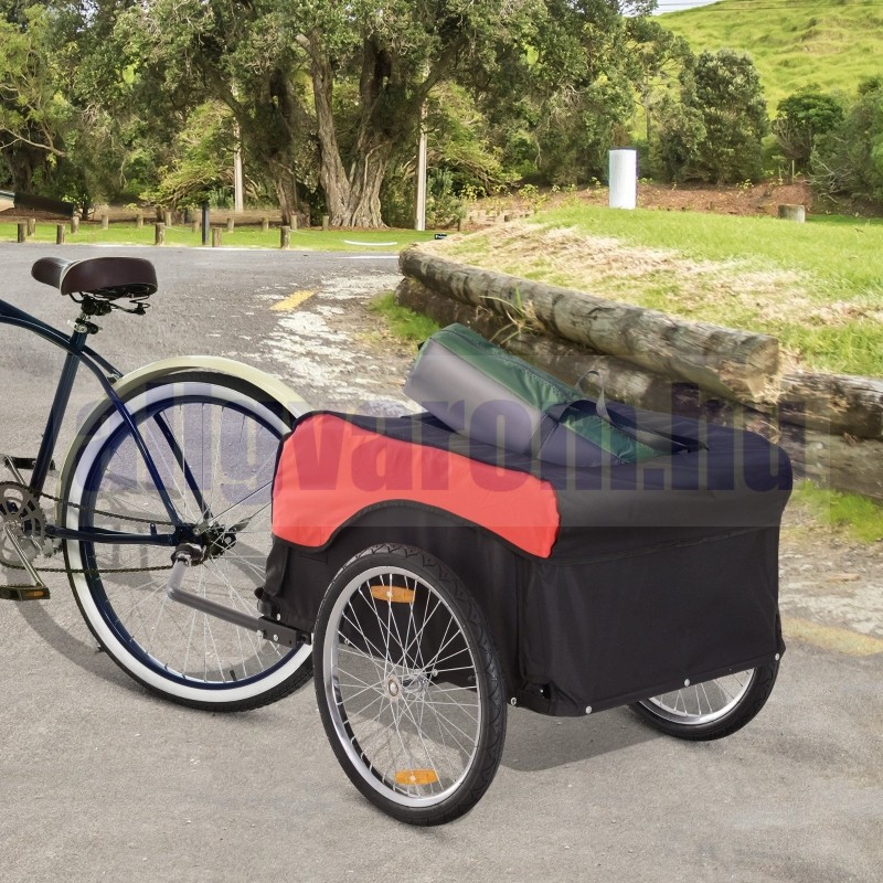 Kerékpár utánfutó szállítódoboz 130x77x65 cm piros-fekete színben 40 kg teherbírás