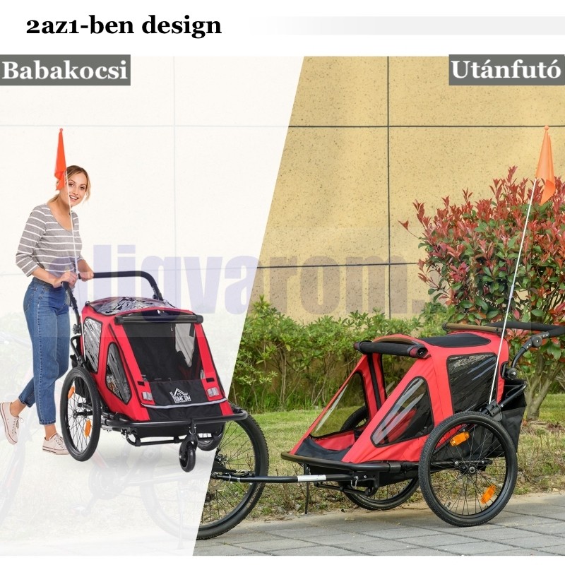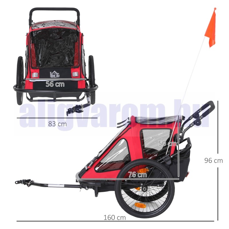 Kerékpár utánfutó 160x83x96 cm összecsukható gyermek utánfutó tároló táskával piros-fekete