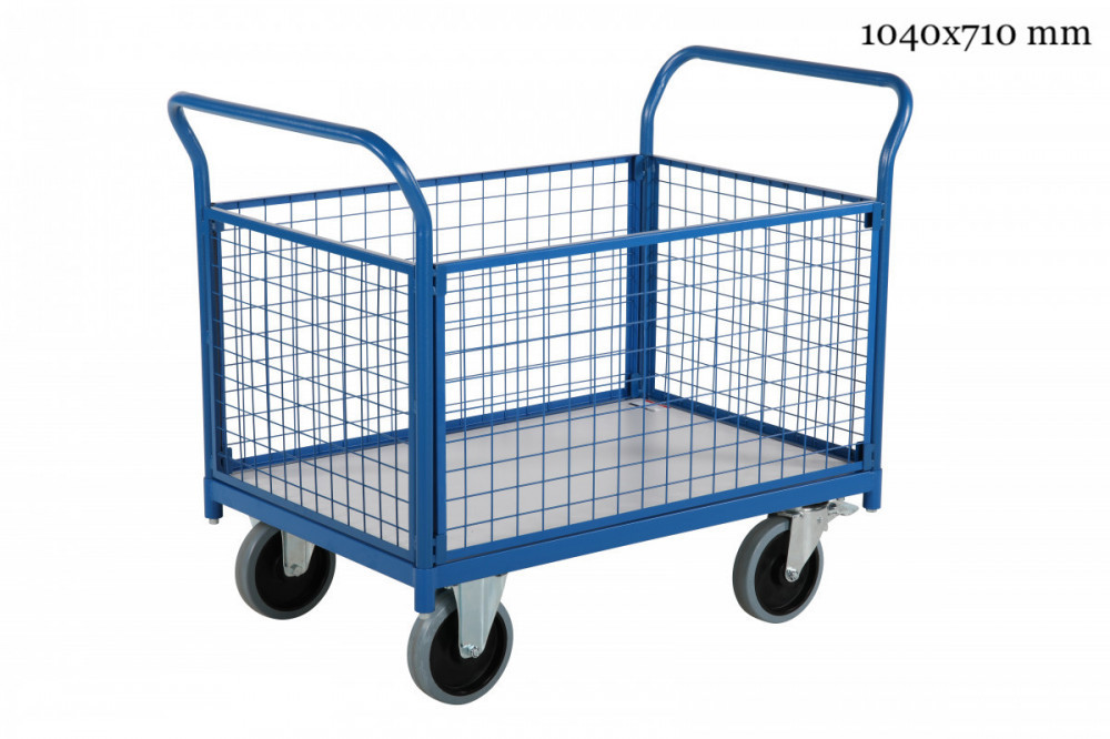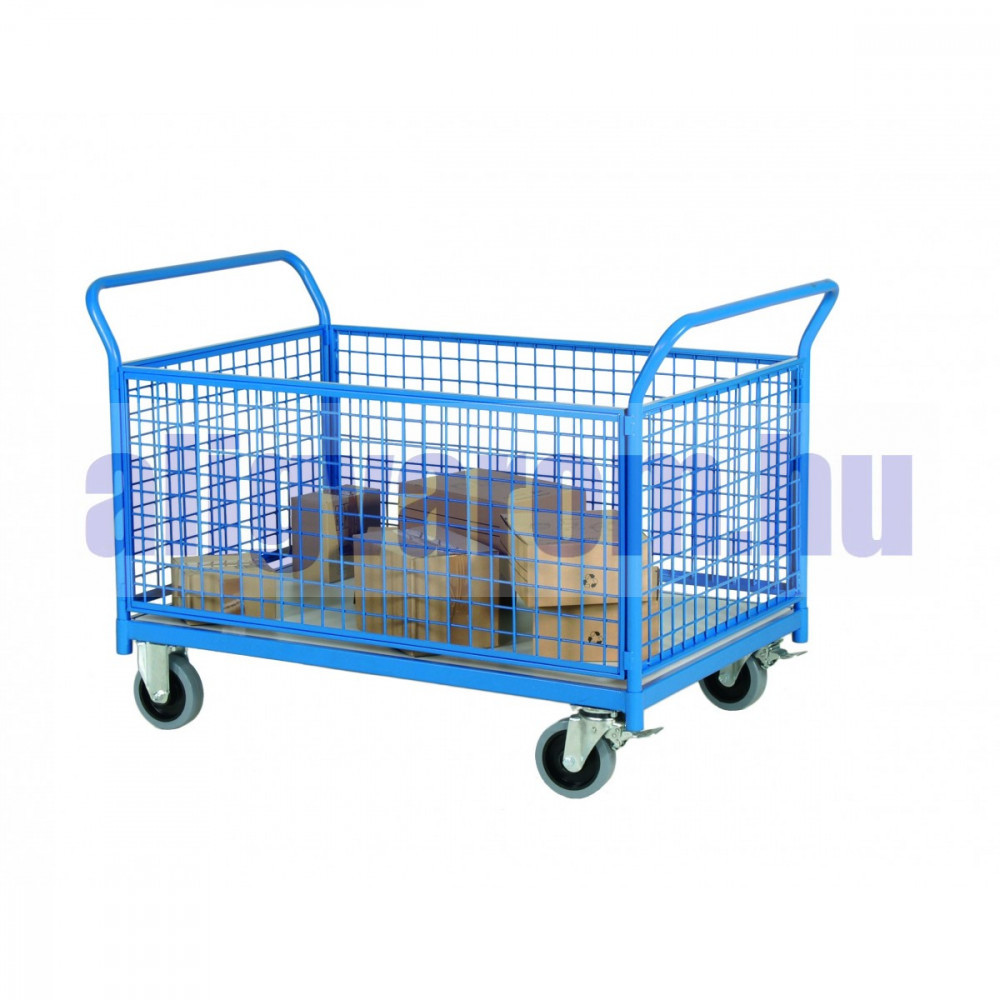 Nagy teherbírású kézikocsi 1040x710 mm 2 rácsos tolókarral és 2 oldalfallal szállítókocsi 800 kg teherbírás