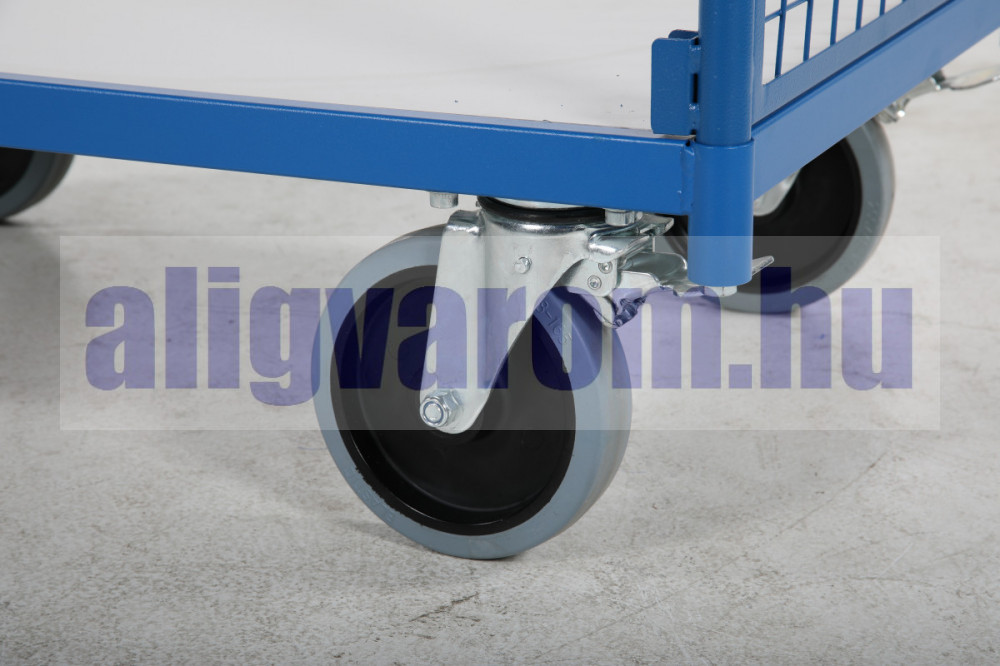2 kerék fékezhető is, 1 db rácsos tolókarral.
