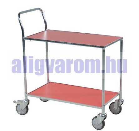 Kétszintes szervizkocsi, kézikocsi 150 kg teherbírás, fékezhető kerekek 425x765 mm cm-es rakfelület piros színben
