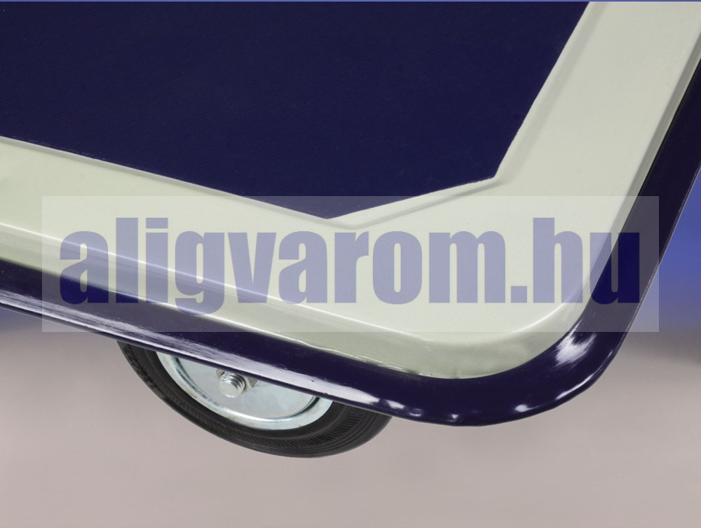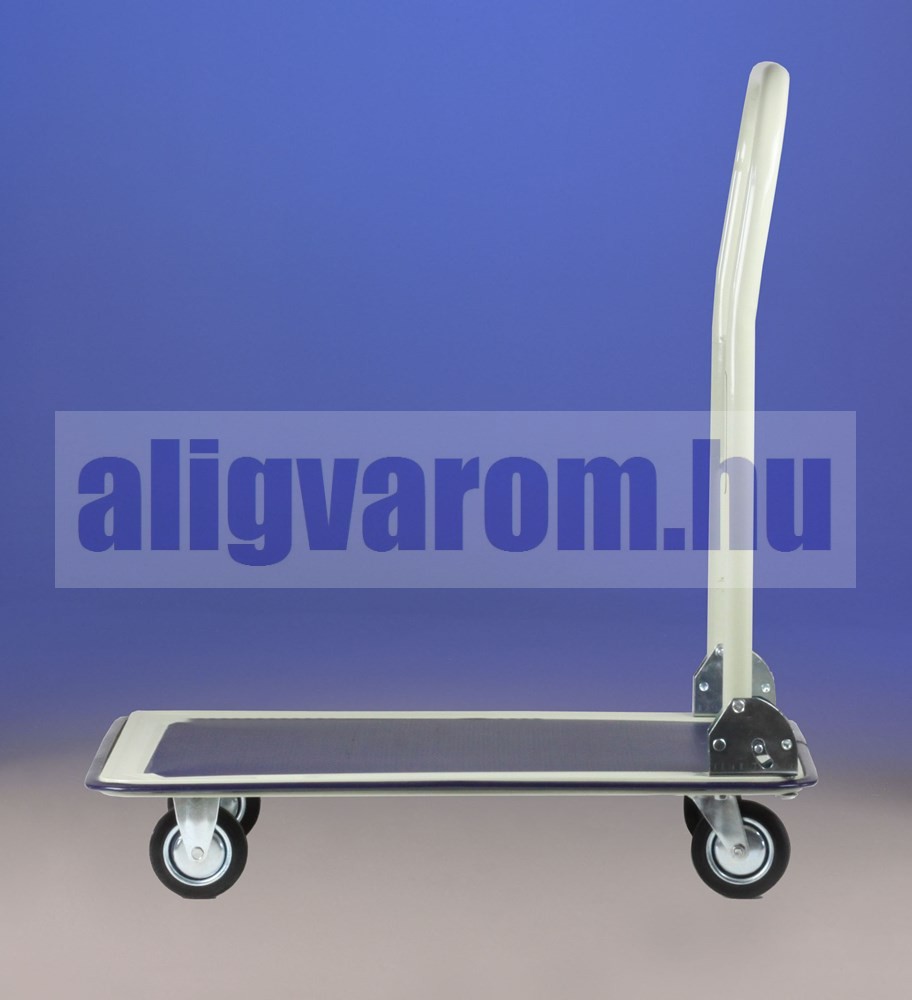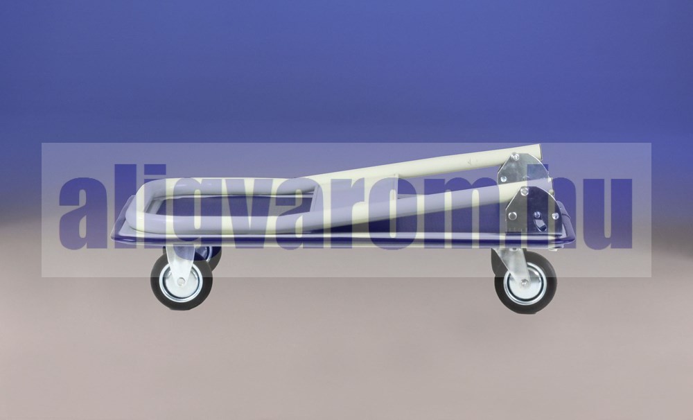 Kézikocsi ládaszállító kiskocsi 300 kg rakfelület mérete: 80x58 cm összecsukható. Könnyű, csak 14 kg, gumírozott rakfelület, lehajtható karral