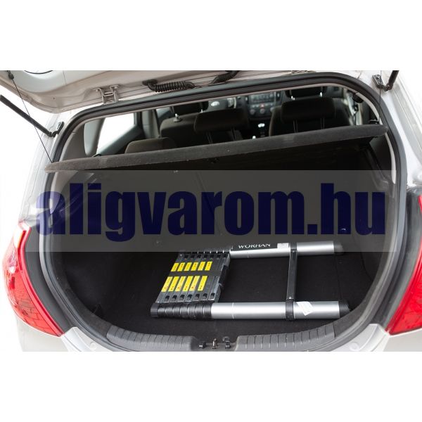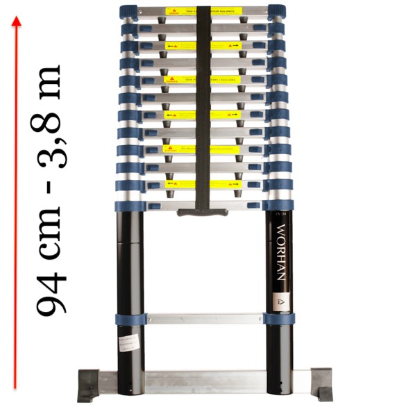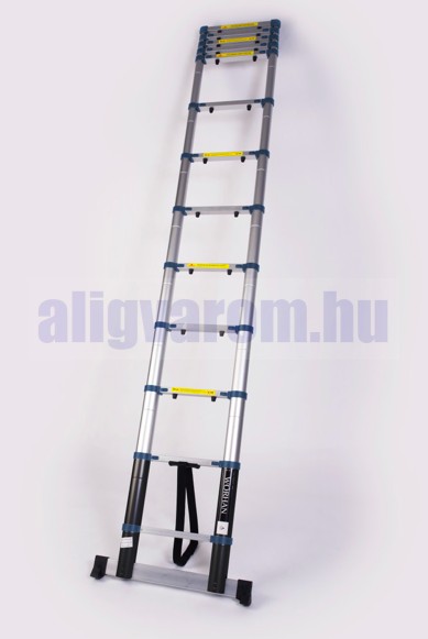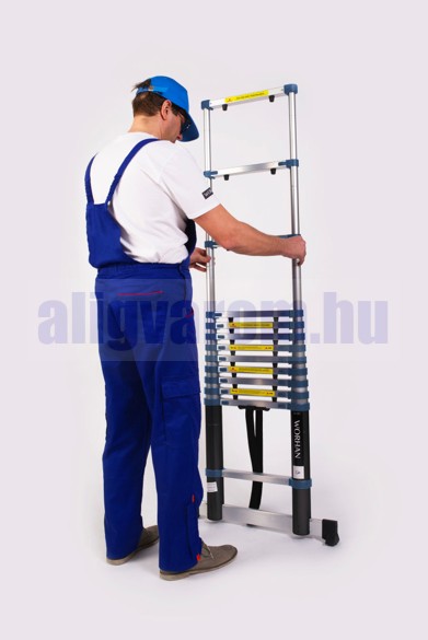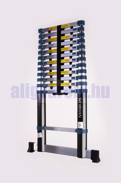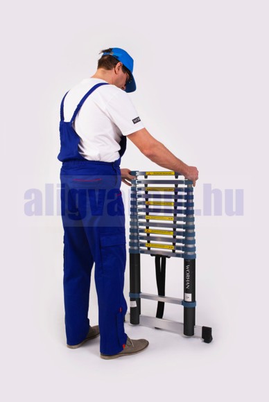 3,8 m magas, kihúzható létra teleszkópos alumínium létra 94 cm-re összecsukható.  Széles támasztólábbal és ujjbecsípődés védelemmel