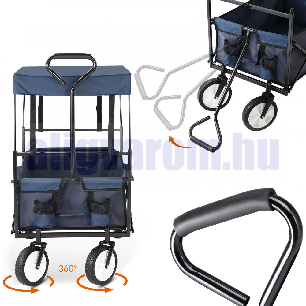 Kiskocsi, strandkocsi összecsukható kézikocsi sötétkék kirándulókocsi kerti kocsi