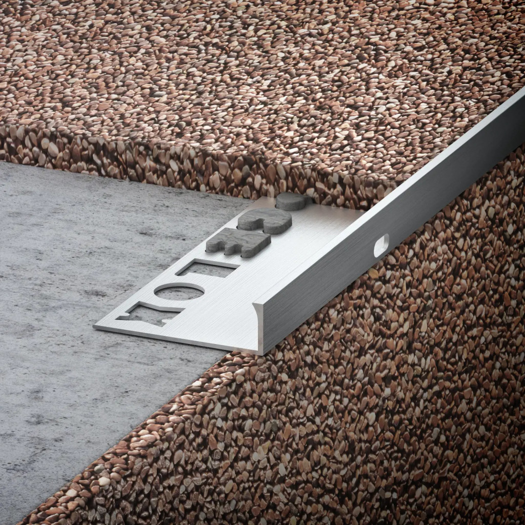 OX Stone KL 10x2500 mm Kőszőnyeg lépcső Natúr alu élvédő Kavicsbevonat szegély vízelvezető furattal Alumínium profil