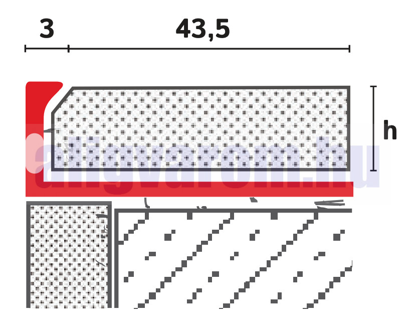 Ennek a korrekt kivitelezéséhez kell ezt a profilt elhelyezni a sarkokon, a profil melett szépen el lehet dolgozni a kőszőnyeget és védi is a sarkokat.
