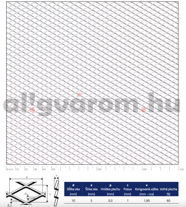 Expandált lemez rozsdamentes 1000x2000x0,5 mm tábla 10x5 mm gyémánt lyuk saválló inox 60%-os áteresztő felület
