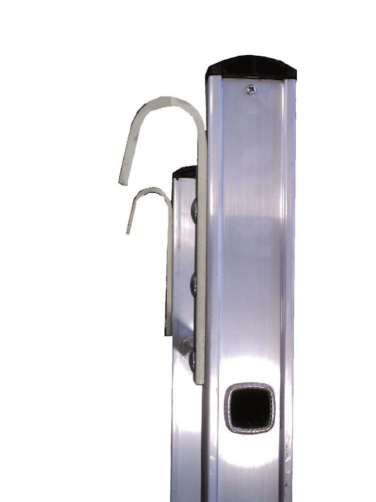 A kampók a létra levegőben tartásához NEM ALKALMASAK, kizárólag döntve, biztonsági rögzítéshez alkalmazhatók!