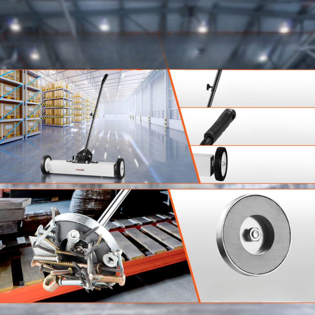 Ez a mágneses seprőgép tökéletes választás műhelyekben, garázsokban, építkezéseken és egyéb helyeken, ahol gyorsan és hatékonyan kell eltávolítani a fémtárgyakat a padlóról. Használatával megelőzhetők a balesetek, és tiszta munkaterületet biztosíthat.