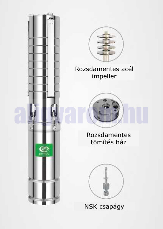 A víz mélyből történő felhozatalára szolgál ez a mélykút szivattyú. Kis mérete ellenére nagy emelési magasság és nagy vízhozam jelemzi.