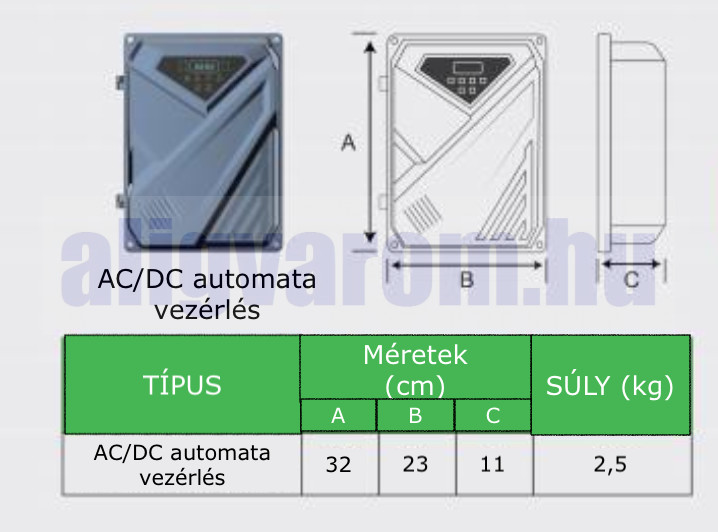 Különlegessége az egyenáramú kivitel és a szolár vezérlésen túl, hogy hálózati áramról is üzemeltethető.