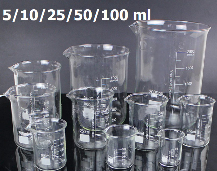 Üveg mérőpohár készlet 5 darabos készlet 5/10/25/50/100 ml laboratóriumi vagy konyhai használatra