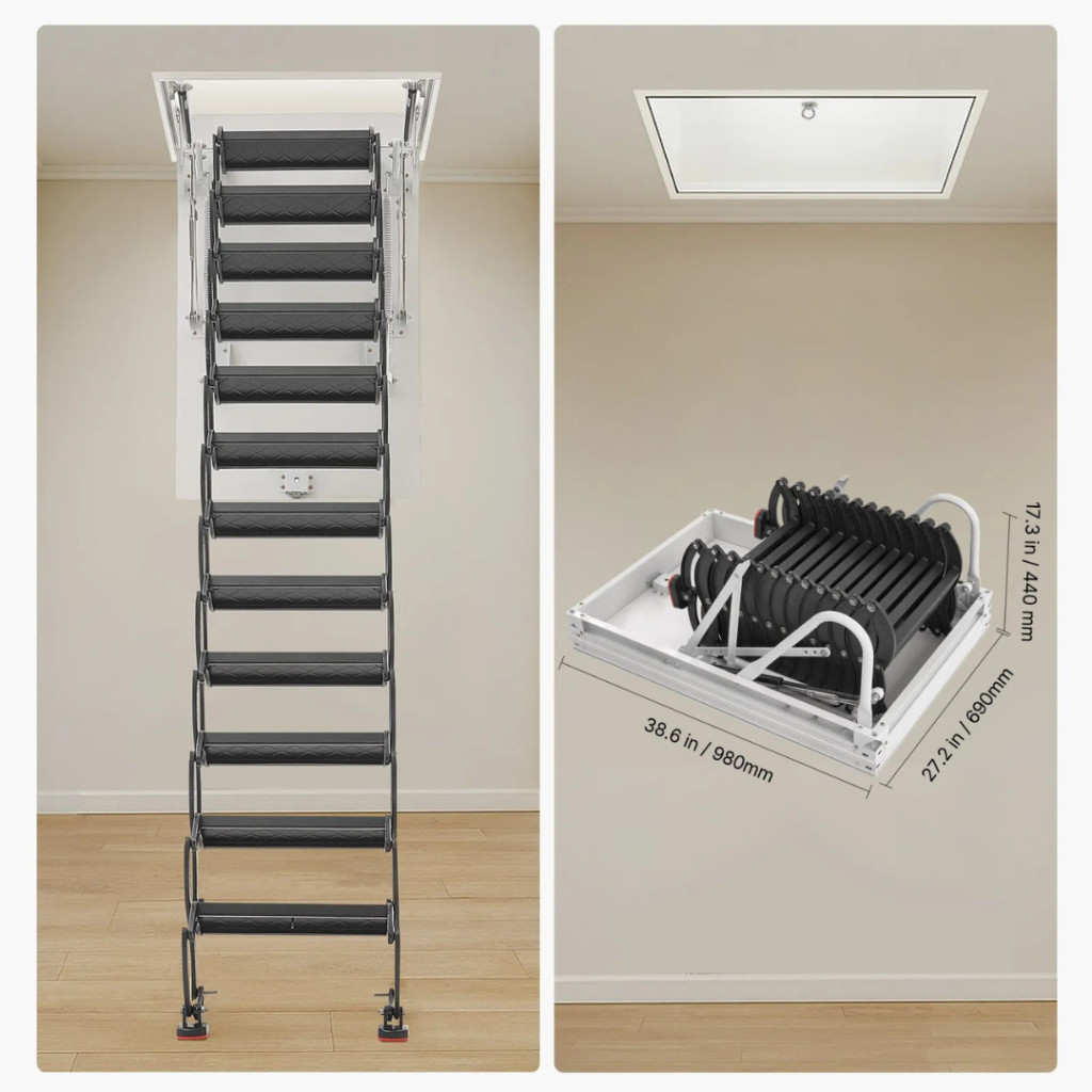 Mert ez a magas teherbírású, hidraulikus padlásfeljáró egyesíti a biztonságos szerkezetet, a modern megjelenést és a kényelmes használatot. Legyen szó padlásról, galériáról vagy tetőtéri helyiségről, a VEVOR padláslépcsőmegbízható, esztétikus és helytakarékos megoldást kínál hosszú távra.