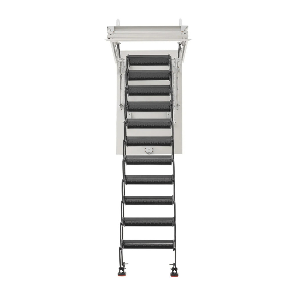 Mert egy professzionális, stabil és könnyen kezelhető lépcsőt kap, amely egyszerre helytakarékos, biztonságos és esztétikus. A hidraulikus működtetés, a magas teherbírás, valamint a tartós acélváz kombinációja biztosítja, hogy ez a padlásfeljáró hosszú távon is kényelmes és biztonságos hozzáférést nyújtson padlásához vagy felső szintjéhez.