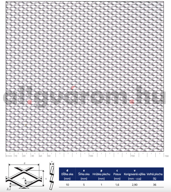 Perforált lemez acél 360x3000 mm tábla 10x5 mm lyuk rombusz alakú osztással 36%-os áteresztő felülettel