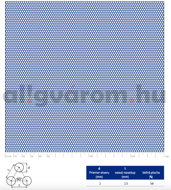 Perforált lemez acél 1000x2000x1 mm tábla 2 mm lyuk kör alakú osztással Szabad áteresztő felület: 58%