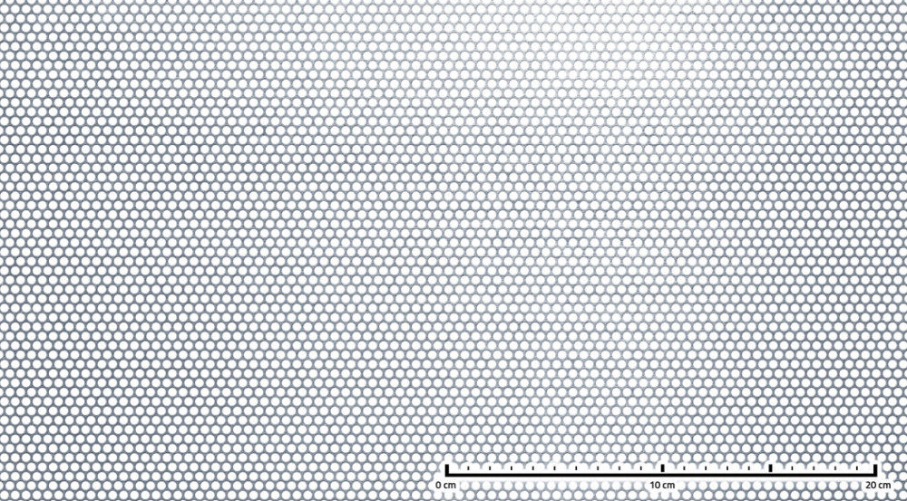 Perforált lemez acél 1000x2000x1,5 mm tábla 4 mm lyuk kör alakú osztással 58%-os áteresztő felülettel