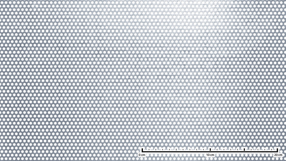 Perforált lemez acél 1000x2000x2 mm tábla 4 mm lyuk kör alakú osztással 40%-os áteresztő felülettel