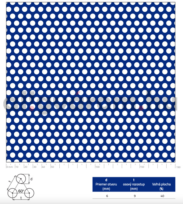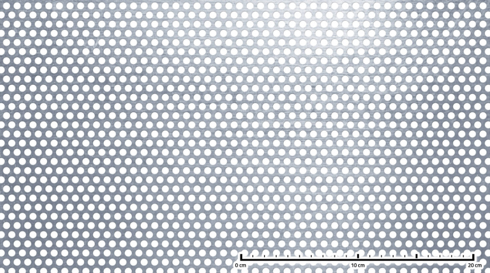 Perforált lemez acél 1000x2000x1,5 mm tábla 6 mm lyuk kör alakú osztással 40%-os áteresztő felülettel