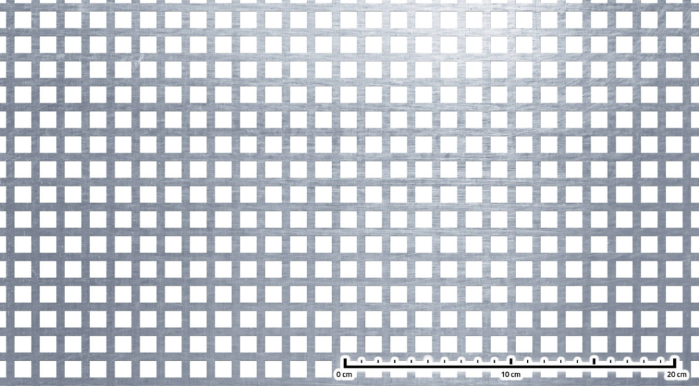 Perforált lemez rozsdamentes acél 1000x2000x1,5 mm tábla 10x10 mm lyuk hálós osztással Szabad áteresztő felület: 45% saválló inox