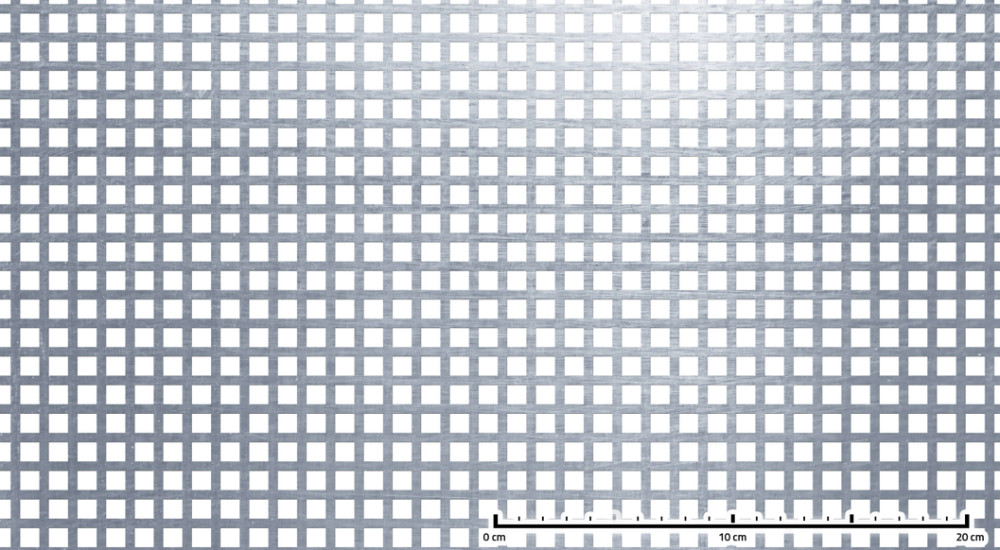 Perforált lemez rozsdamentes acél 1000x2000x1 mm tábla 10x10 mm lyuk hálós osztással Szabad áteresztő felület: 60% saválló inox