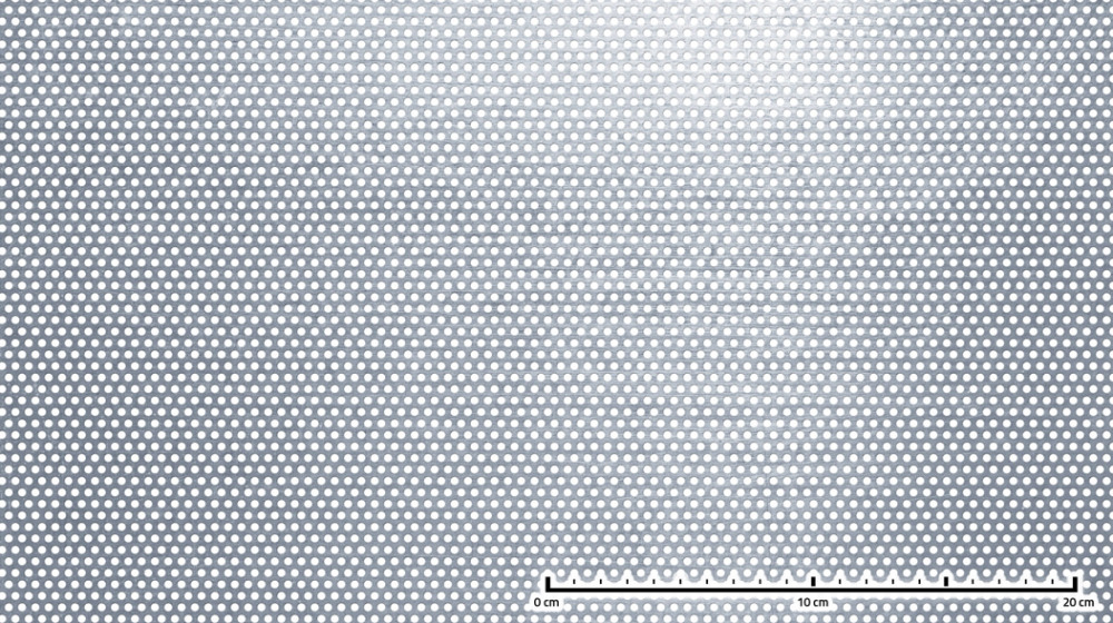 Perforált lemez rozsdamentes 1000x2000x1mm tábla 3 mm lyuk Körlyukasztás átlós osztással Szabad áteresztő felület: 33% saválló inox