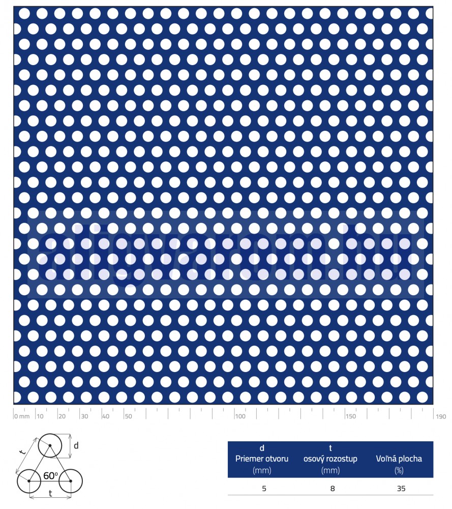Perforált lemez alumínium 1000x2000mm tábla 5 mm lyuk Körlyukasztás átlós osztással Szabad áteresztő felület: 35%