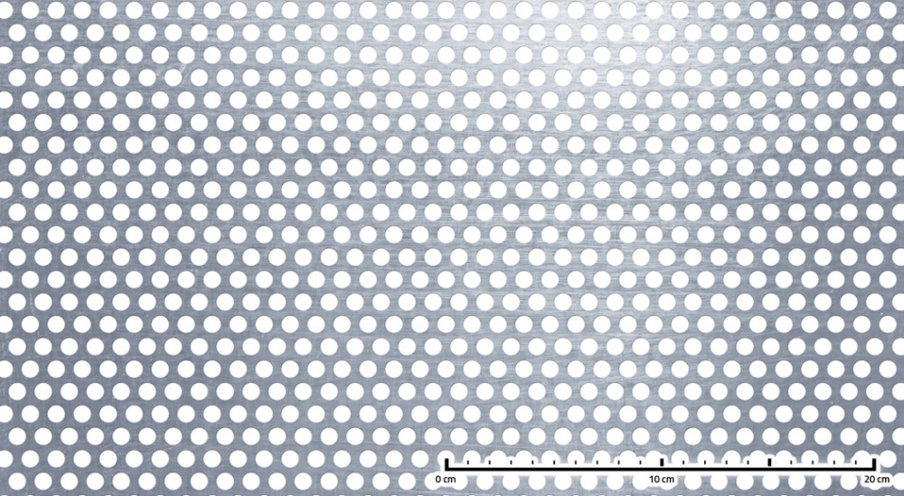 Perforált lemez rozsdamentes 1000x2000x1,5 mm tábla 8 mm lyuk Körlyukasztás átlós osztással Szabad áteresztő felület: 40% saválló inox
