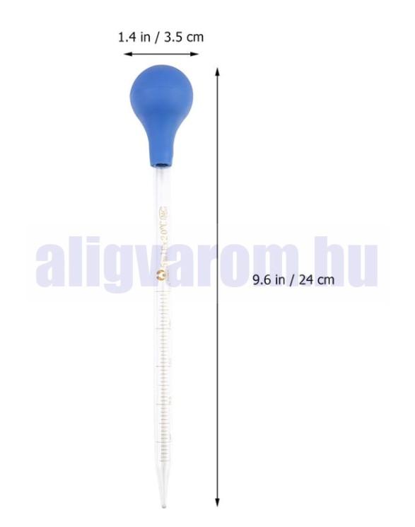• Megfelelő méretű pipetta és élénk színű gumi borítás a folyadék egyenletes leadásához.